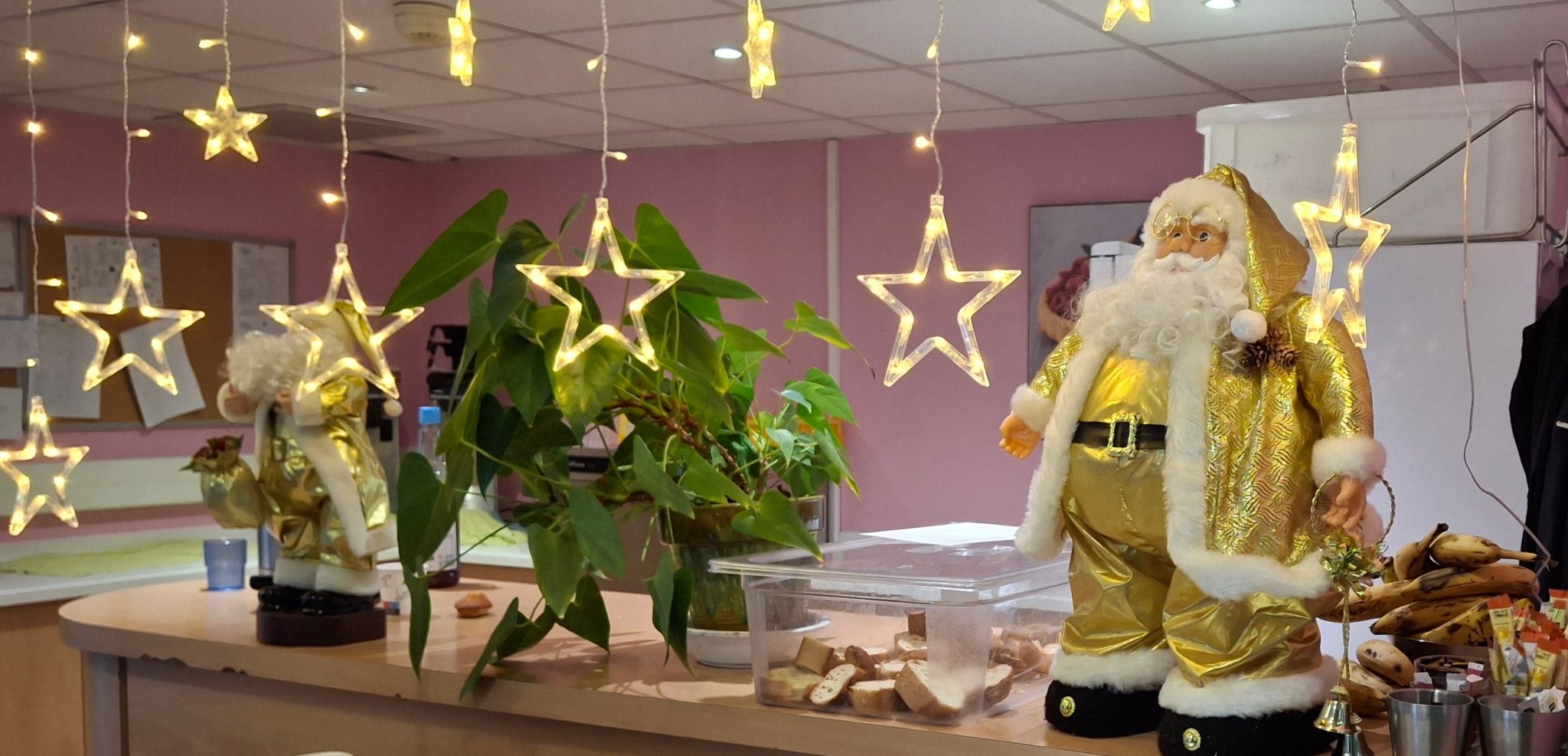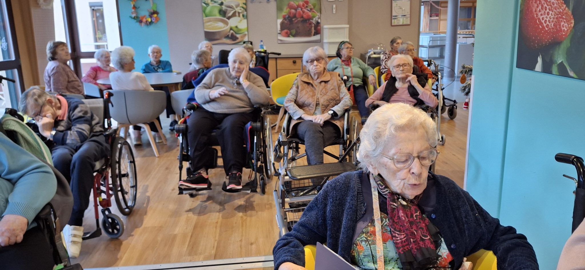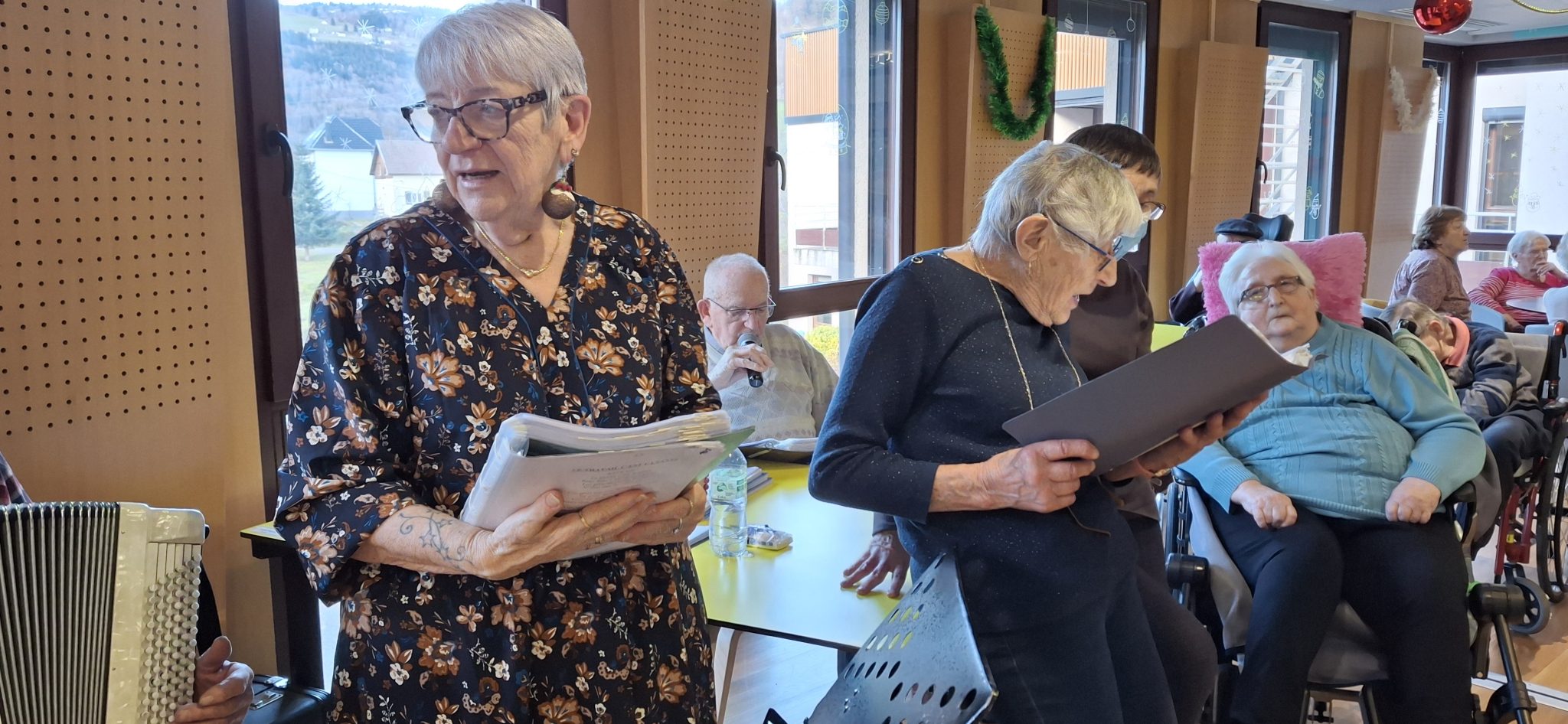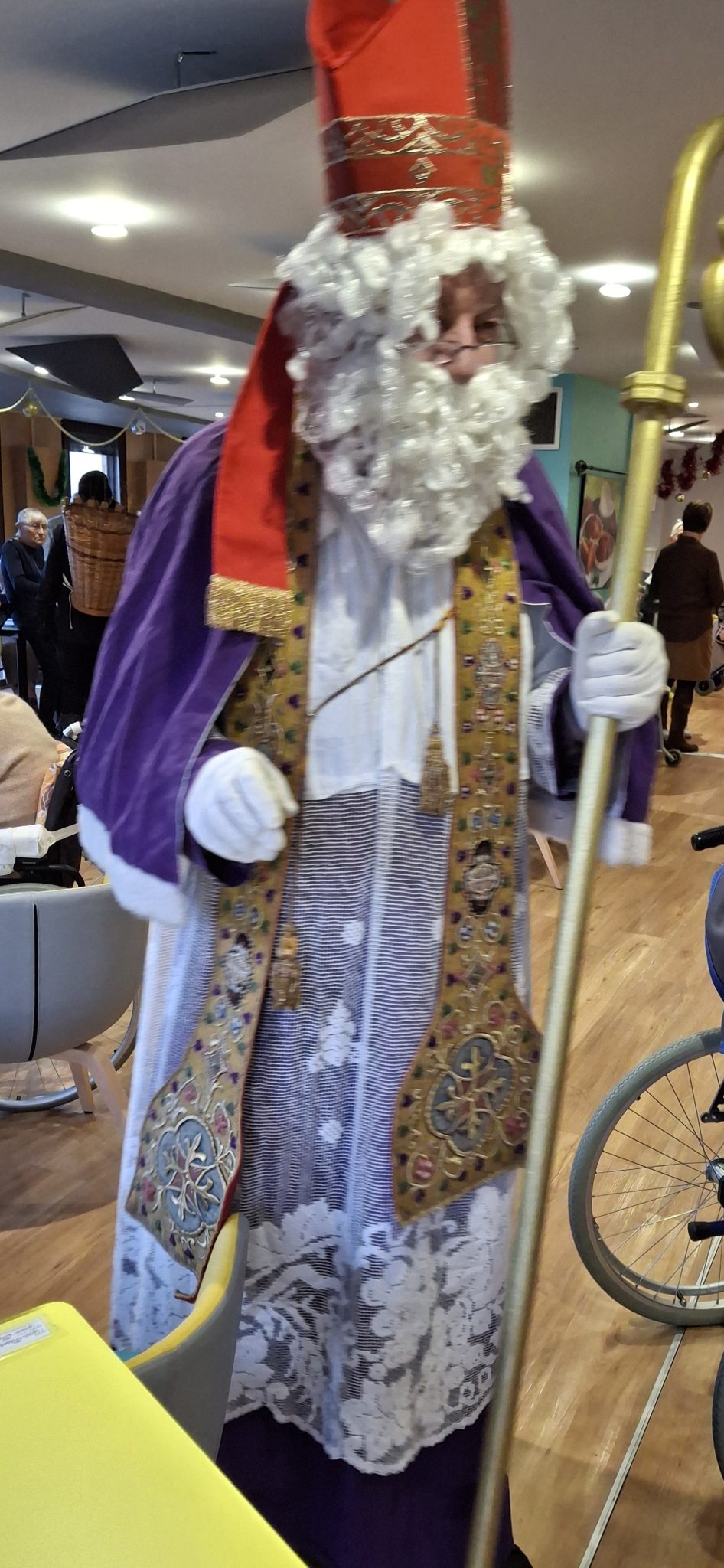 Ce jeudi, nous coiffions St Nicolas pour le plus grand plaisir des résidents! Le CCAS de Cornimont, composé de Mme le Maire, d’adjoints et de conseillers municipaux sont venus passer une grande partie de l’après-midi afin d’offrir des cadeaux, partager les mignardises et les boissons servies par nos charmantes bénévoles membres actifs de l’Association « Sourire d’Automne ». Le synthétiseur de Marie-Denise était accompagné de l’accordéon de Pierrot! La joie et la bonne humeur ont accueilli notre Evêque de Myre local… Sans oublier Père Fouettard, plutôt sympathique malgré les verges placées dans son panier!
